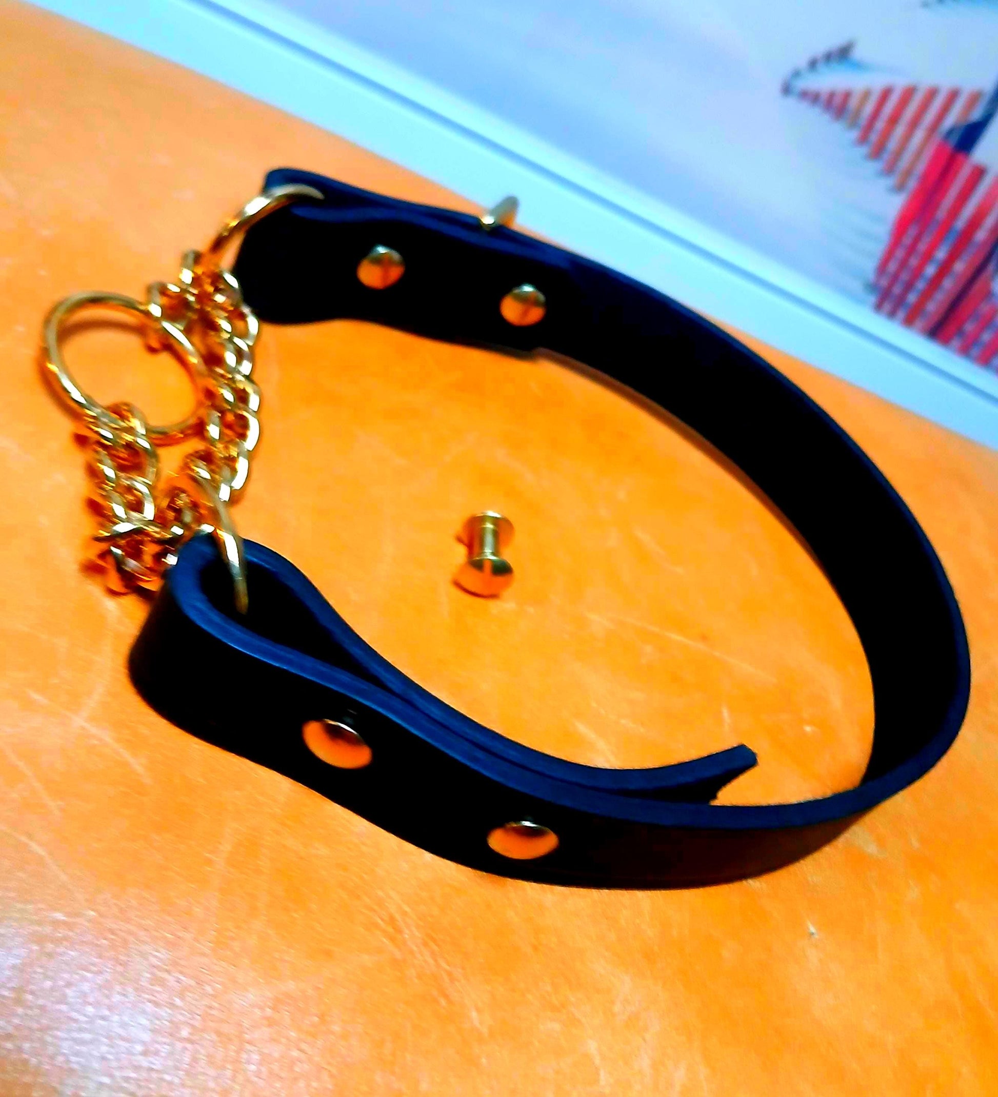 This is a Hand-made 1 inch-width Black Leather Adjustable Martingale collar.